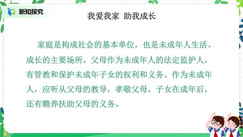 教学重点 | 明确在对未成年人的保护方面,家庭、学校、社会和司法部门分别应该履行的法律义务。 |