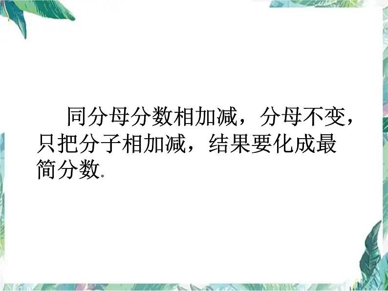 同分母分数相加减,分母不变,只把分子相加减,结果要化成最简分数。