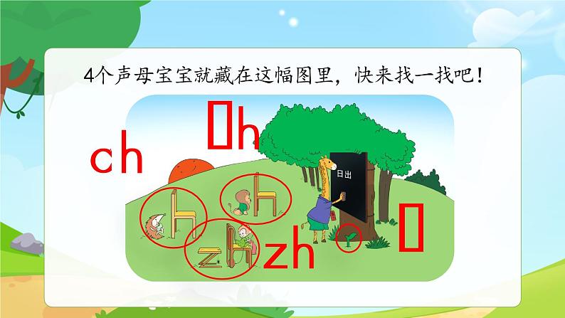4个声母宝宝就藏在这幅图里,快来找一找吧!
