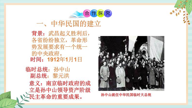 初中历史与社会第三单元 资产阶级革命与中华民国的建立第10课 中华民国的创建评优课ppt课件