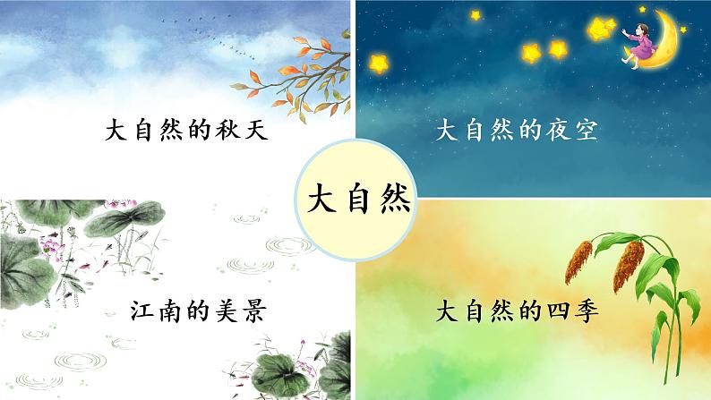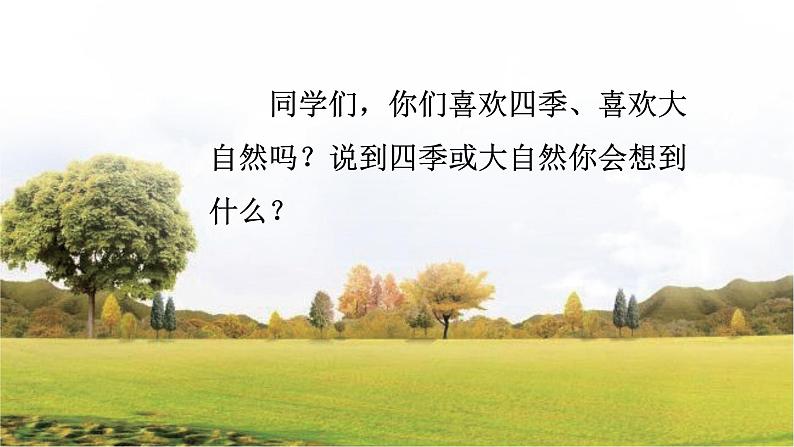 同学们,你们喜欢四季、喜欢大自然吗?说到四季或大自然你会想到什么?