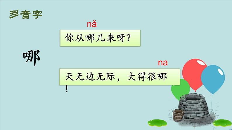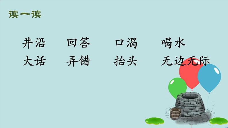 井沿 回答 口渴 喝水 大话 弄错 抬头 无边无际