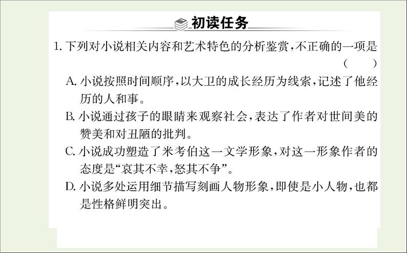 这是一份人教统编版选择性必修 上册8 大卫·科波菲尔(节选)教学ppt课件,共1页。