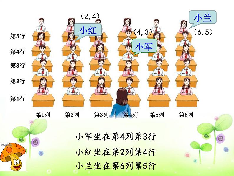 请你说出你好朋友的名字,再请一位同学用数对表示出你好朋友的位置。