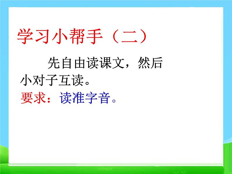 先自由读课文,然后小对子互读。 要求:读准字音。