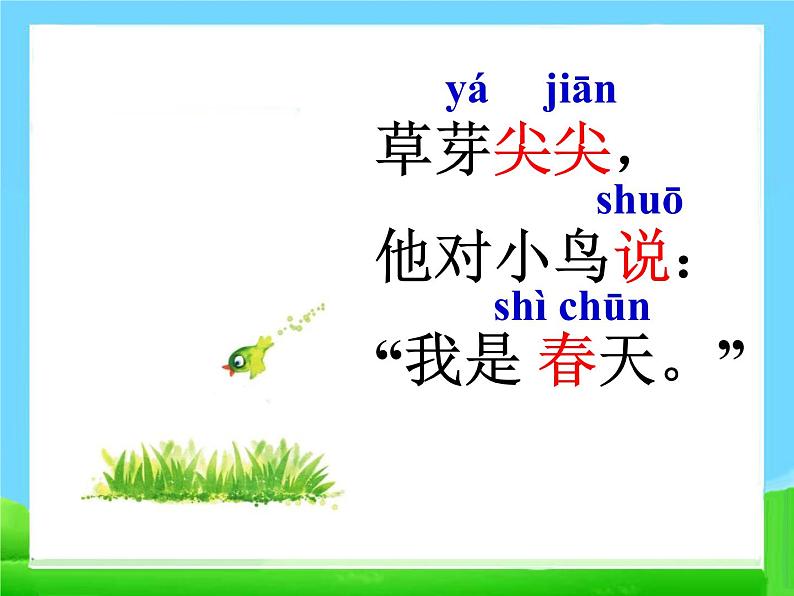 草芽尖尖,他对小鸟说:“我是 春天。”