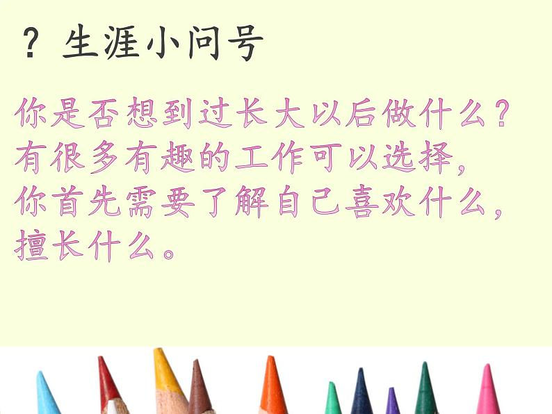 展开你是否想到过长大以后做什么?有很多有趣的工作可以选择,你首先需要了解自己喜欢什么,擅长什么。