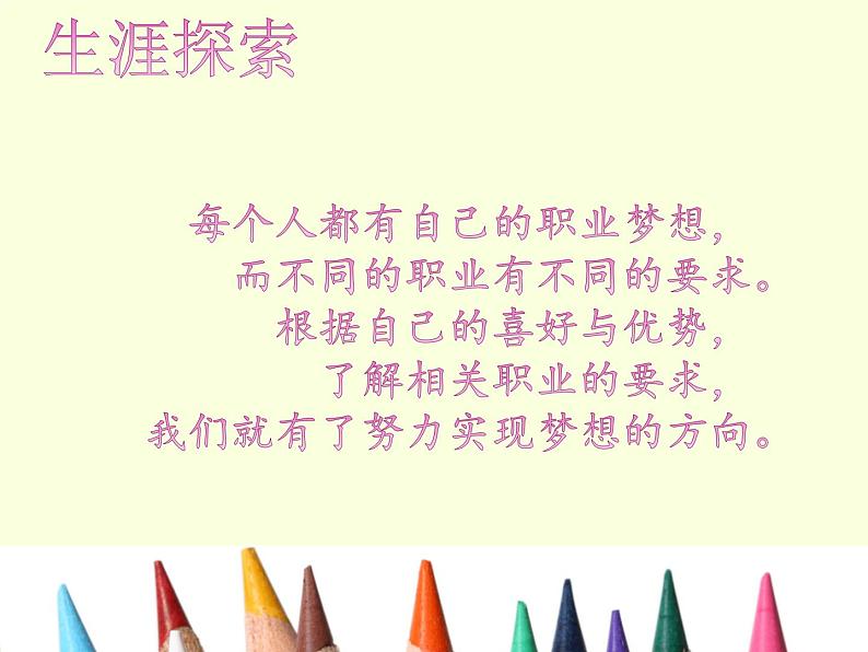 每个人都有自己的职业梦想,而不同的职业有不同的要求。根据自己的喜好与优势,了解相关职业的要求,我们就有了努力实现梦想的方向。