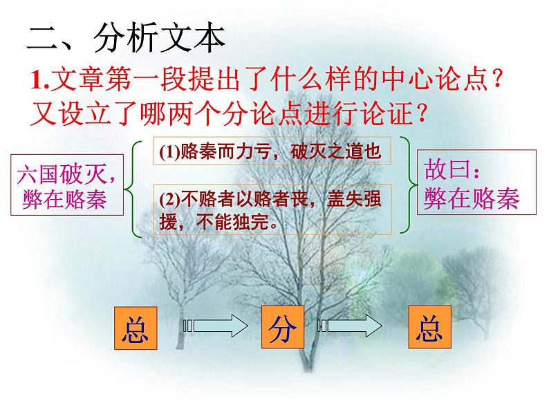 (1)以地事秦 而从六国破亡之故事(2)燕赵之君,始有远略 始速祸焉(3)终继五国迁灭 惜其用武而不终也