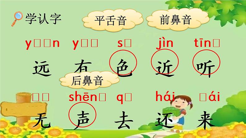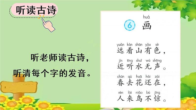 展开听老师读古诗,听清每个字的发音。