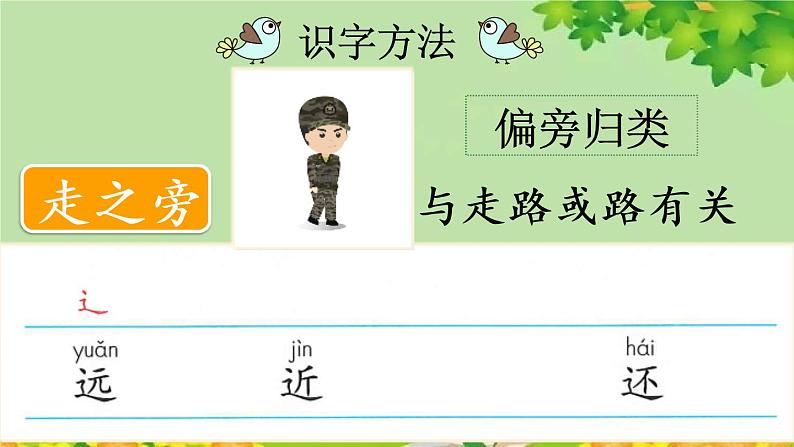 人教部编版一年级上册6 画教课内容课件ppt: 这是一份人教部编版一年级上册6 画教课内容课件ppt,共21页。PPT课件主要包含了zǒuzhī走之,半包围结构,斜刀头,ク+巴色等内容,欢迎下载使用。