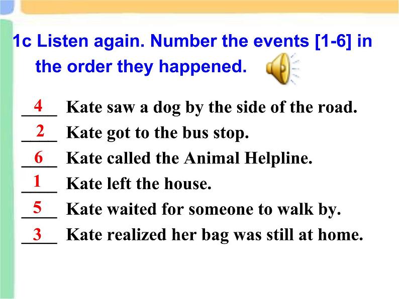 1c Listen again. Number the events [1-6] in the rder they happened.