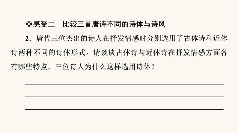 进阶二 单元主题任务探究任务二 感受不同的唐诗情韵第三单元 生命的诗意•文学阅读与写作