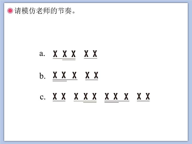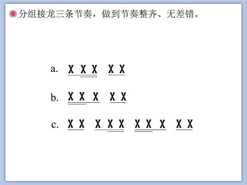 分组接龙三条节奏,做到节奏整齐、无差错。