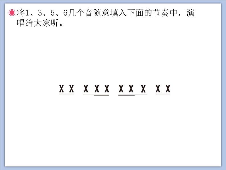 将1、3、5、6几个音随意填入下面的节奏中,演唱给大家听。