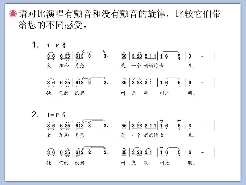 请对比演唱有颤音和没有颤音的旋律,比较它们带给您的不同感受。