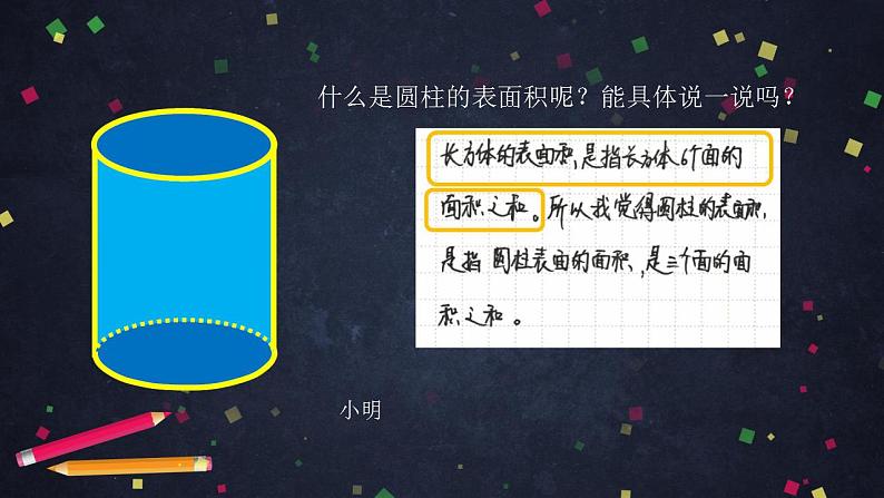 这是一份小学数学人教版六年级下册3 圆柱与圆锥1 圆柱圆柱的表面积课文课件ppt,文件包含0513六年级数学人教版-圆柱的表面积一-2PPT课件_1-Npptx、0513六年级数学人教版-圆柱的表面积一-1教案docx、0513六年级数学人教版-圆柱的表面积一-3学习任务单docx、0513六年级数学人教版-圆柱的表面积一-2PPT课件pdf等4份课件配套教学资源,其中PPT共60页, 欢迎下载使用。
