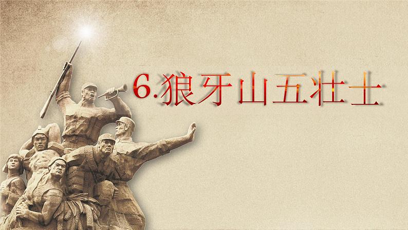 这是一份人教部编版六年级上册6 狼牙山五壮士精品课件ppt,文件包含6《狼牙山五壮士》第2课时课件pptx、6《狼牙山五壮士》第2课时教案docx、视频素材《狼牙山五壮士》跳崖部分mp4、视频素材狼牙山五壮士著名抗日英雄群体mp4等4份课件配套教学资源,其中PPT共38页, 欢迎下载使用。
