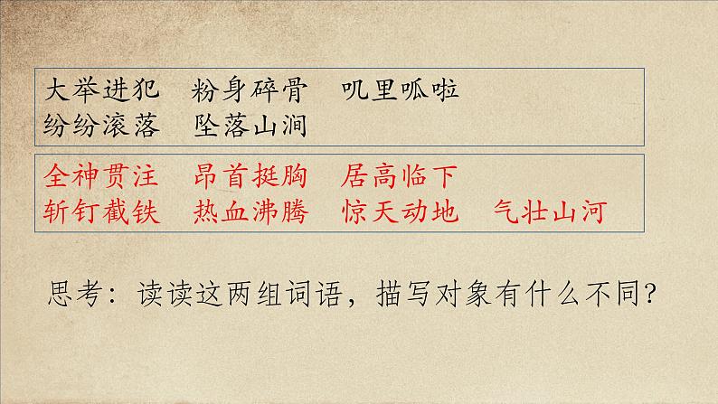这是一份语文六年级上册狼牙山五壮士一等奖课件ppt,文件包含06《狼牙山五壮士》第2课时课件pptx、06《狼牙山五壮士》第2课时教案docx、06《狼牙山五壮士》课时测评docx、06《狼牙山五壮士》第2课时导学案设计docx等4份课件配套教学资源,其中PPT共13页, 欢迎下载使用。