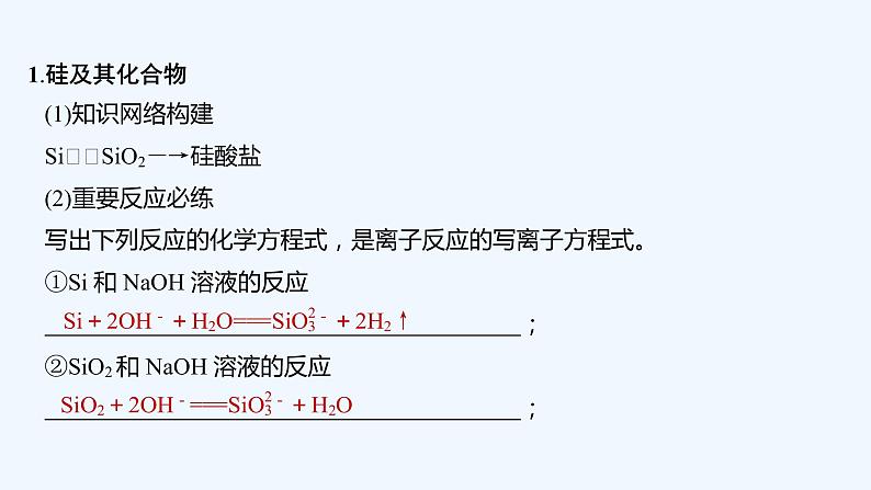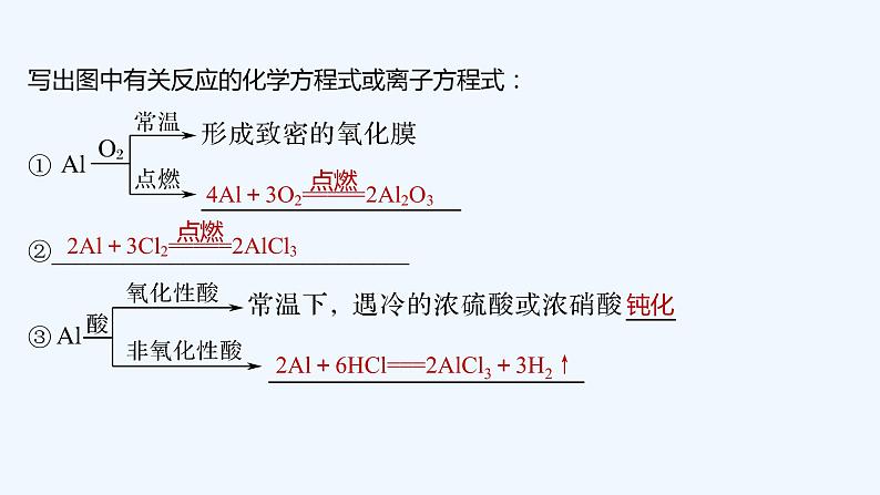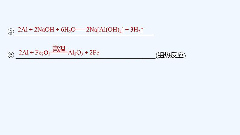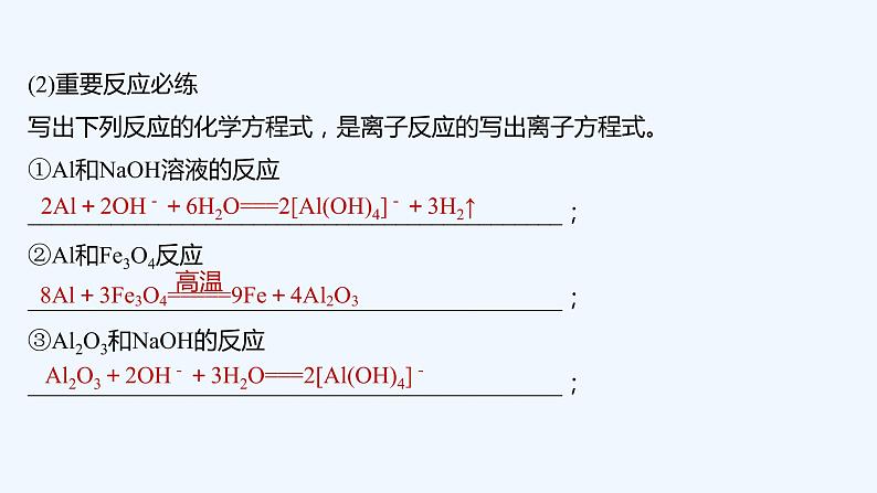 (2)重要反应必练写出下列反应的化学方程式,是离子反应的写出离子方程式。①Al和NaOH溶液的反应_____________________________________________;②Al和Fe3O4反应_____________________________________________;③Al2O3和NaOH的反应_____________________________________________;
