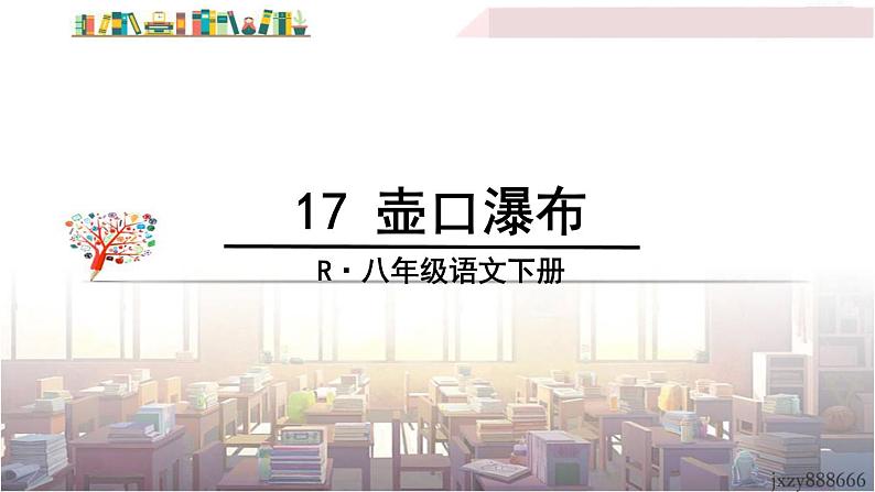 这是一份语文八年级下册17 壶口瀑布教课内容课件ppt,共60页。PPT课件主要包含了壶口瀑布,R·八年级语文下册,◆词语解释,两次看的瀑布,中国三大瀑布,黄果树瀑布,吊水楼瀑布,课后习题参考答案等内容,欢迎下载使用。
