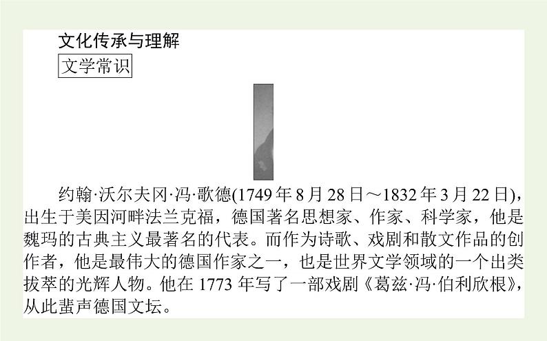 这是一份人教统编版选择性必修 中册13.1 迷娘(之一)教学演示ppt课件,共28页。PPT课件主要包含了作品简介,迷娘其人,迷娘之一等内容,欢迎下载使用。
