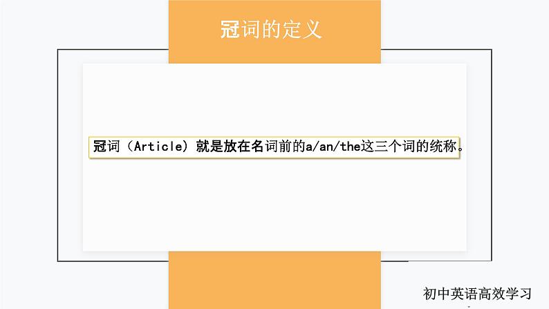 冠词(Article)就是放在名词前的a/an/the这三个词的统称。