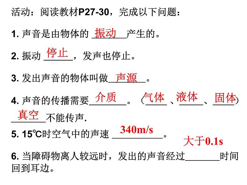 3.知道声音在不同介质中的声速不同,知道空气中的声速;