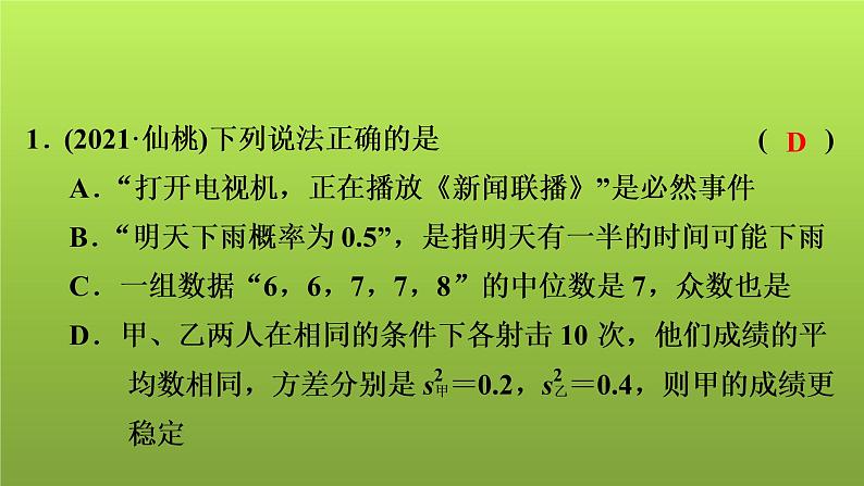 中考数学一轮复习课时讲解课件第36讲《概率》(含答案):