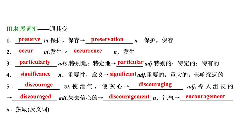 这是一份高考英语一轮复习unit 16 stories课件,共46页。PPT课件主要包含了基础知识·梳理,考点知识·导练,abandon,abandoned,preserve,occur,occurrence,loss,lost,lose等内容,欢迎下载使用。