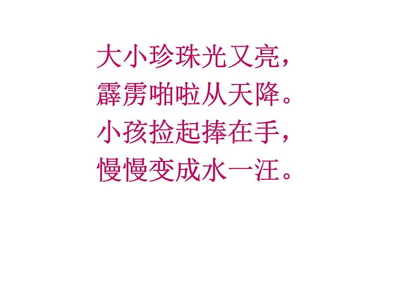 大小珍珠光又亮,霹雳啪啦从天降。小孩捡起捧在手,慢慢变成水一汪。