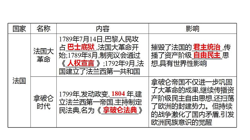 新疆 初中历史 中考复习 专题三资本主义制度的产生、巩固和发展 课件