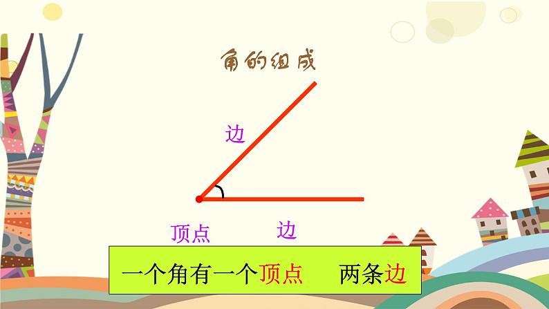 这是一份2021学年3 角的初步认识图文ppt课件,共39页。PPT课件主要包含了找一找图中的角,角的组成,欢迎来到角的乐园,判断角的儿歌,红角与蓝角大小之争,美丽校园中的角等内容,欢迎下载使用。