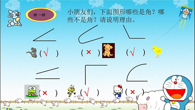 小朋友们,下面图形哪些是角?哪些不是角?请说明理由。