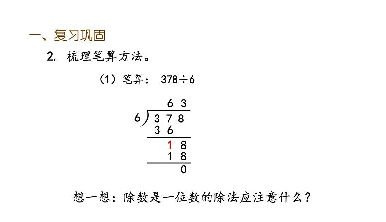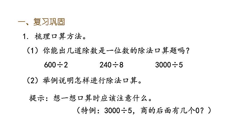 1. 梳理口算方法。(1)你能出几道除数是一位数的除法口算题吗?