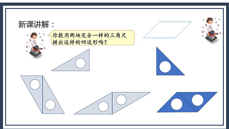 师:你能用两块完全一样的三角尺拼出这样的平行四边形吗?