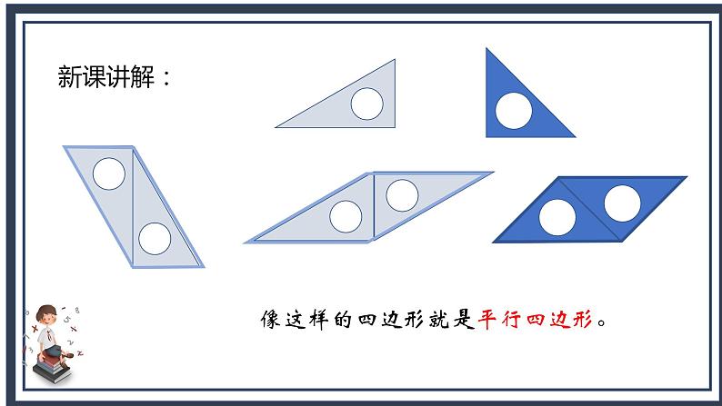 教师边画平行四边形边讲解。