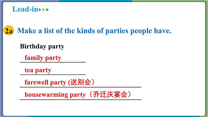 2.What d yu want t say t him/her?3.When is the best time t have the party?4.Where can yu have the party?5.What kind f fd will there be?