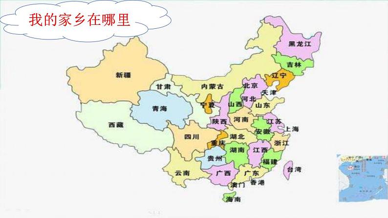 【找一找】在地图上找到家乡所在的省级行政区的位置。