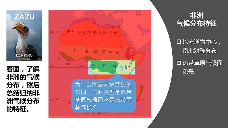 看图,了解非洲的气候分布,然后总结归纳非洲气候分布的特征。