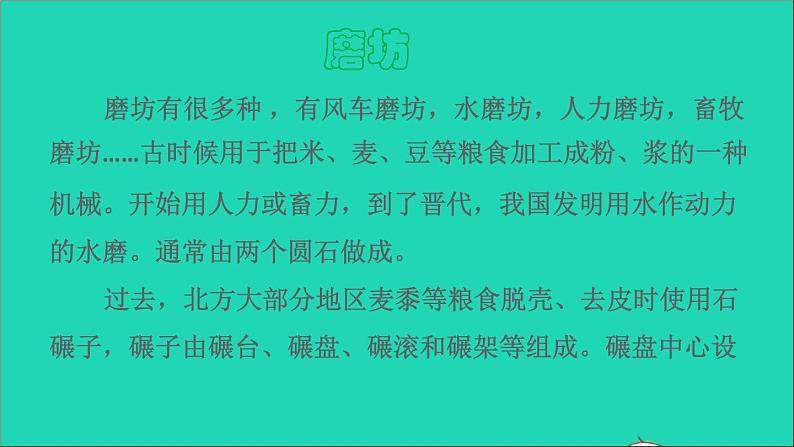 这是一份语文二年级下册14 小马过河课前预习课件ppt,共16页。PPT课件主要包含了点击打开视频,水磨坊,人力磨坊,走近作者,读一读等内容,欢迎下载使用。