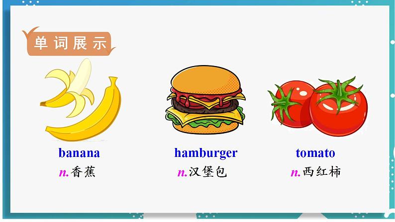 ▲可数名词单数变复数规则(1)一般直接在单词后加s。如:apple→apples,banana→bananas,hamburger→hamburgers(2)以字母x、s、ch、sh等结尾的单词要加es。如:bx→bxes,bus→buses,watch→watches,brush→brushes