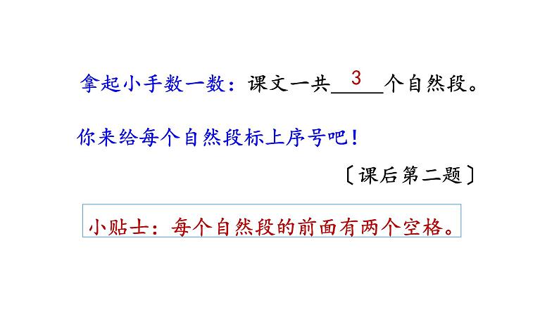 自由读课文,读准字音、读通句子,带生字的句子多读几遍,注意课文中“一〞字的不同读音以及词末带有“子、了〞的轻声的读法。