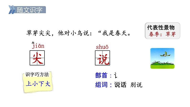草芽尖尖,他对小鸟说:“我是春天。〞