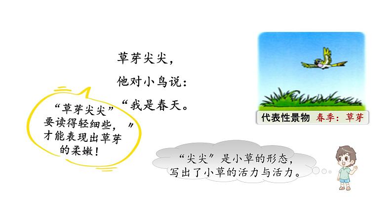 草芽尖尖,他对小鸟说:“我是春天。〞