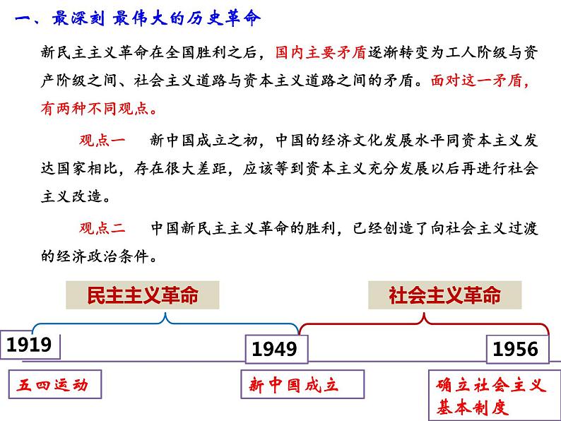 这是一份高中政治 (道德与法治)人教统编版必修1 中国特色社会主义第二课 只有社会主义才能救中国社会主义制度在中国的确立背景图ppt课件,共32页。PPT课件主要包含了新民主主义革命时间轴,三大改造,知识拓展,在艰辛探索中前进等内容,欢迎下载使用。