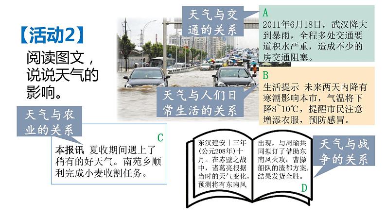 天气是一个地区短时间里的大气状况,它是时刻在变化的。