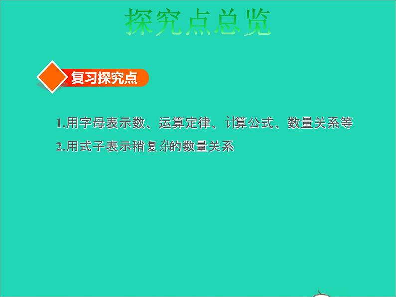 1.用字母表示数、运算定律、计算公式、数量关系等