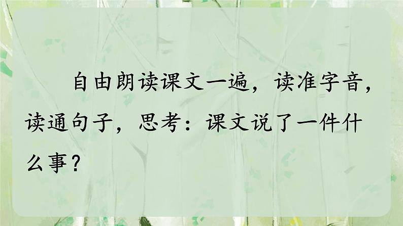 自由朗读课文一遍,读准字音,读通句子,思考:课文说了一件什么事?