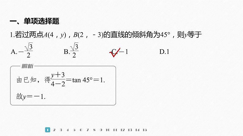 展开1.若过两点A(4,y),B(2,-3)的直线的倾斜角为45°,则y等于
